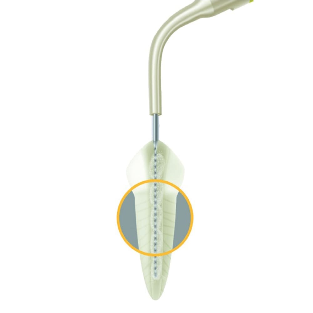 Irrisafe files are used for irrigation once the root canal has been prepared. Irrisafe safely eliminates the smear layer, dentine debris and bacteria from the root canal. Its blunt tip prevents any risk of perforating the apex or the canal walls.
