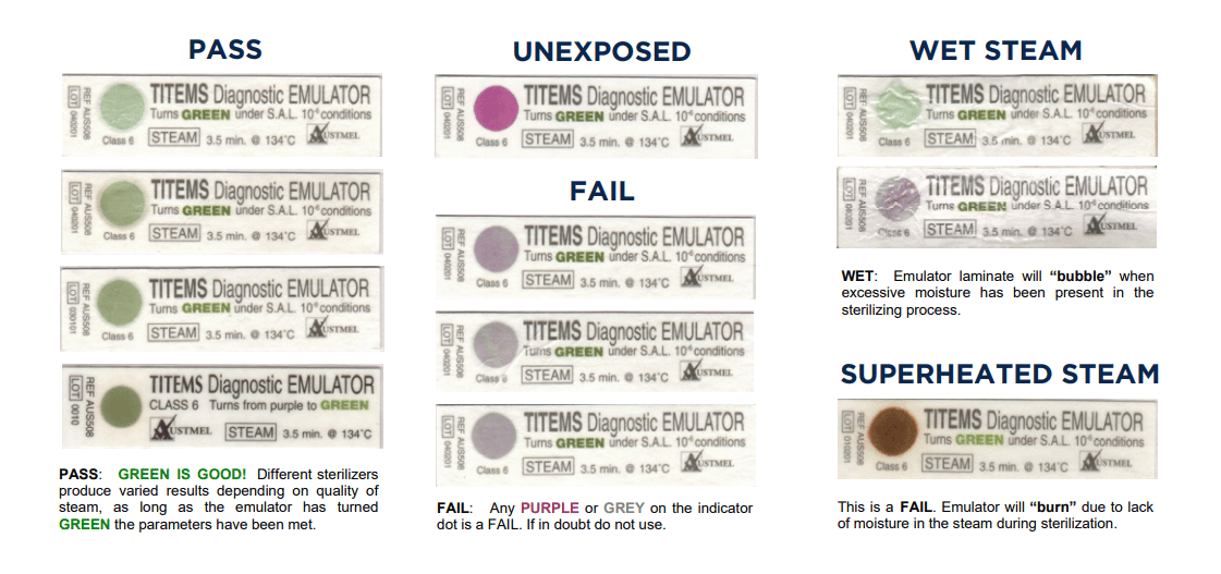 Titems Diagnostic Emulators provide an easily identifiable visual confirmation of correct sterilization conditions within the steriliser chamber