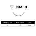 Glycolon Sutures 5/0 13mm 3/8 Circ R/Cut Violet 70cm DSM13 - Box 24