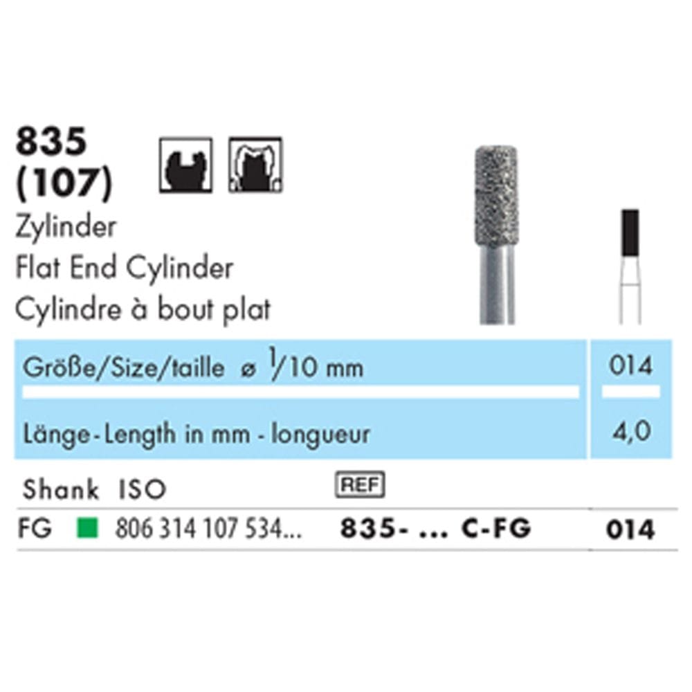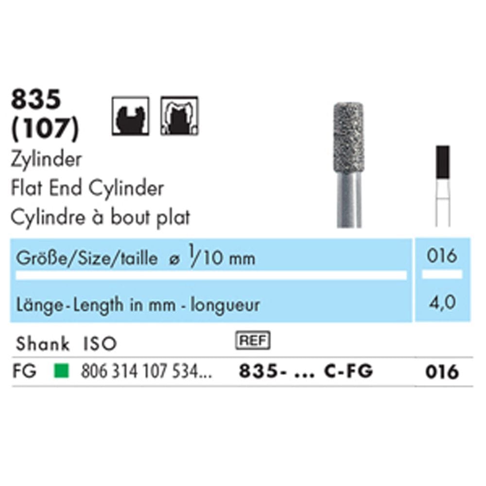 NTI Diamond Bur FG Flat End Cylinder 835 016 Coarse - Pack 5 *WSL