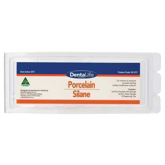 Dentalife Porcelain/Silane Kit, 1 x Porcelain Etch 2.5ml Syringe / 1 x Silane 2.5ml Syringe Kit.